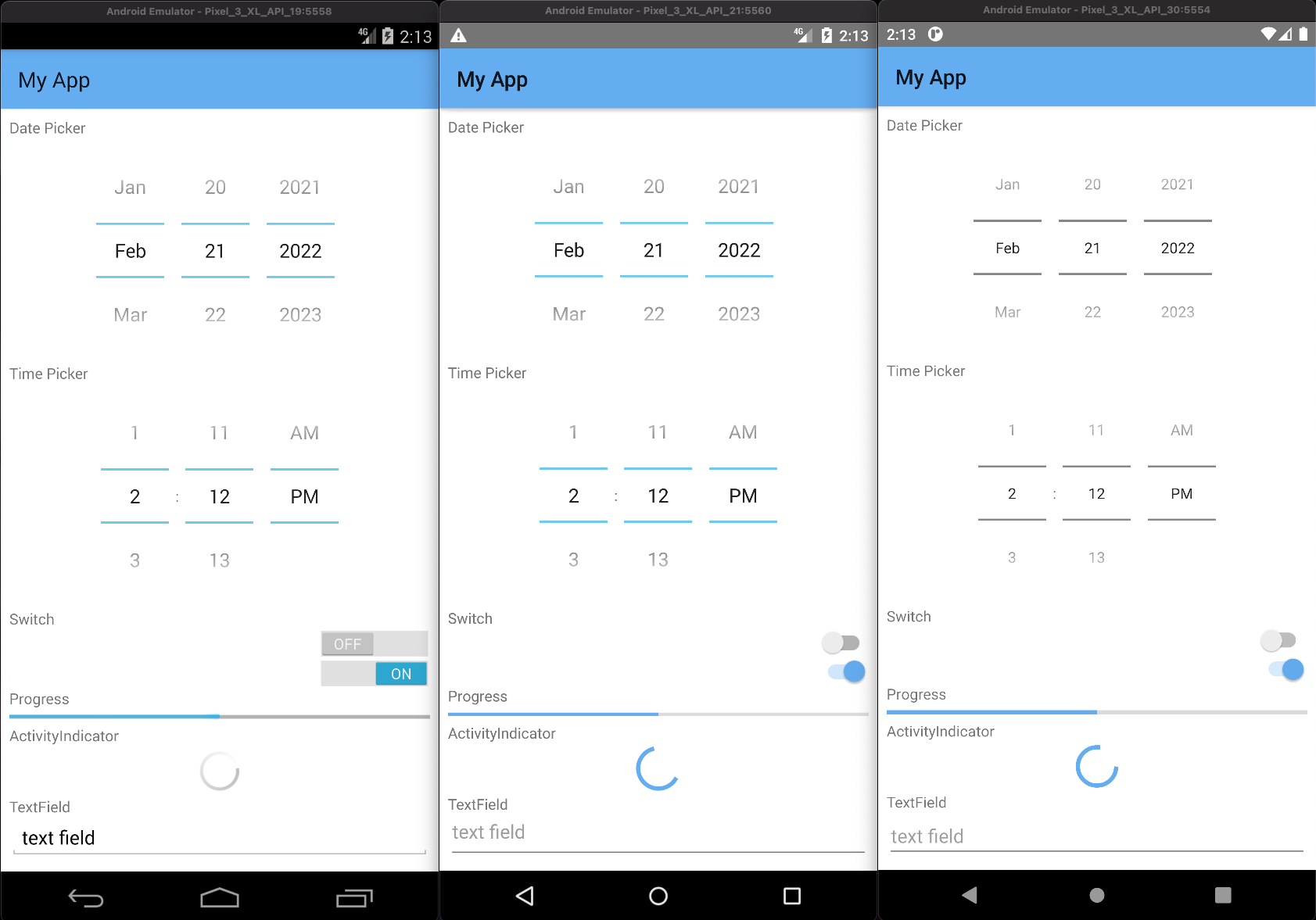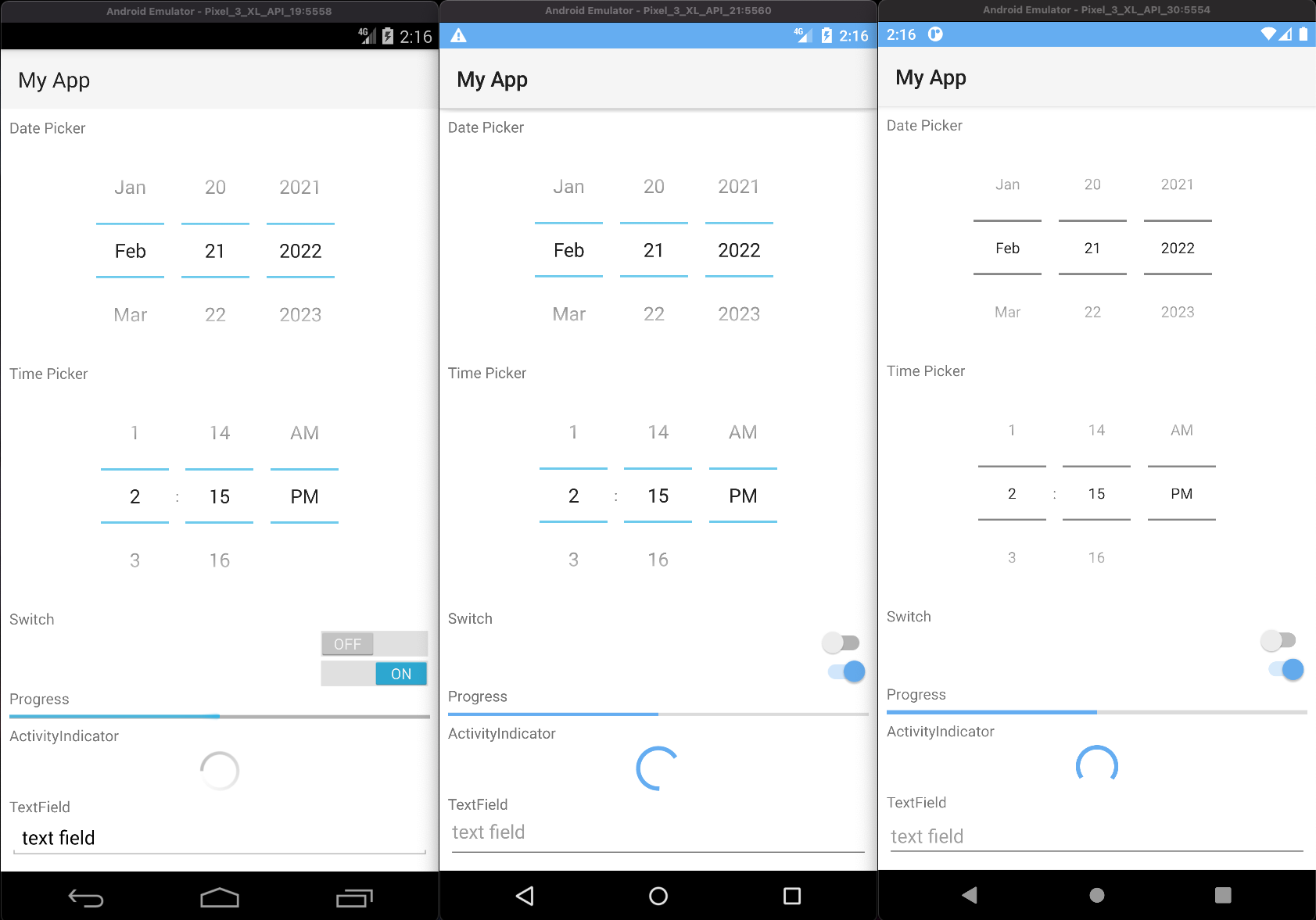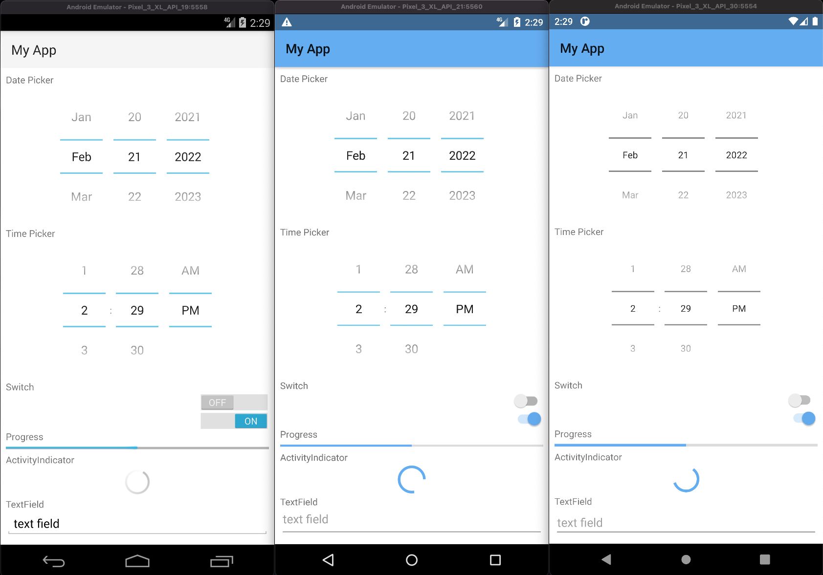 On Android, many aspects of the default styling is controlled through various settings within the App_Resources folder.