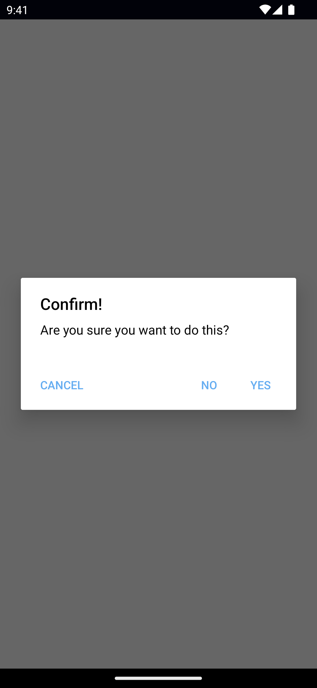 • cancelable (Android only): Sets if the dialog can be canceled by taping outside of the dialog.