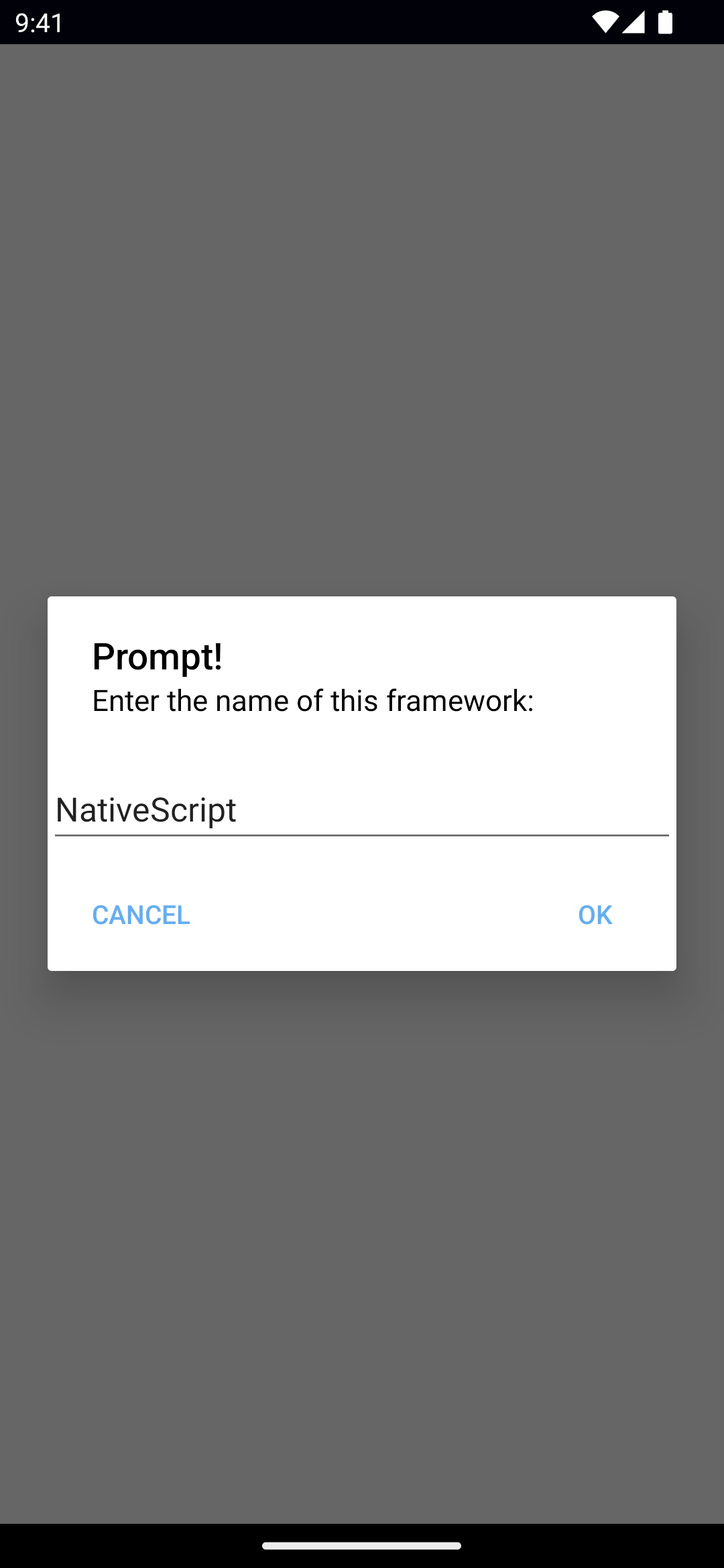 NativeScript offers various dialogs, available via the Dialogs import from @nativescript/core, or globally.